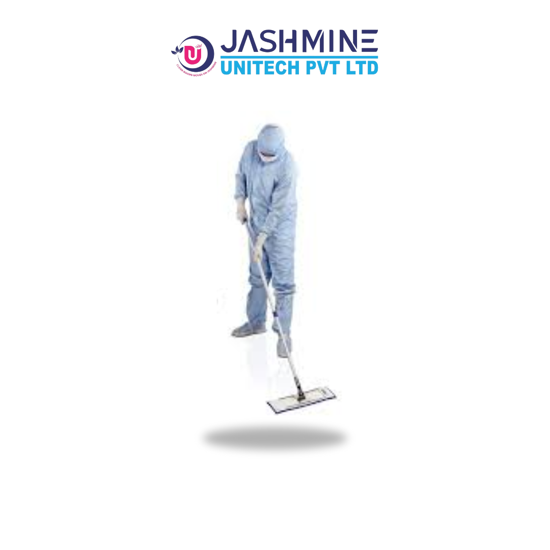 Floor Mops: Lint free sponge mops are used. Mop handles should be of metal or plastic. Clean the powder spillage in compounding area with wet floor mops only.